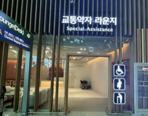- 제2터미널 이용 시, 출국 전 교통약자 라운지에서 휴식 가능